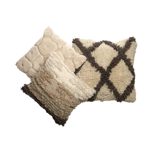 Cozy and fluffy cushioncover with a frontside in New Zeelandwool and unicolored backside in cotton.