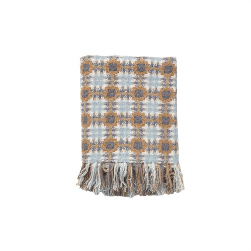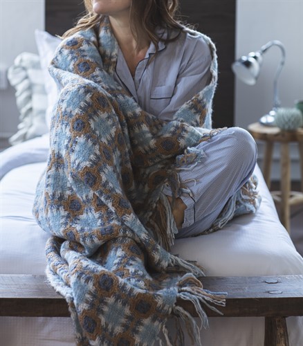 Charming retro throw in beautiful colors in a wool blend. Also available in a pink version.