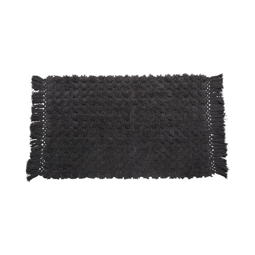 Enfärgad stilren badrumsmatta i bomull med fransar på kortsidorna