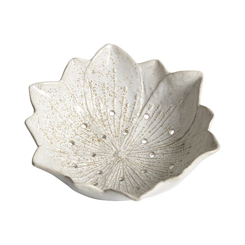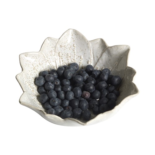 Cremefärgat skål i stengods. Formad som blomblad. Vacker att lägga det mesta i.