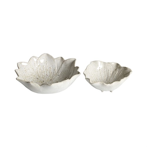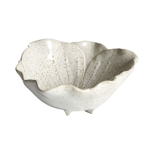Cremefärgad skål i stengods. Formad som blomblad. Vacker att lägga det mesta i.