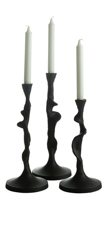 Stilren med charmig svart ljusstake i bränd svart aluminium. Finns även i två högre höjder att matcha med.