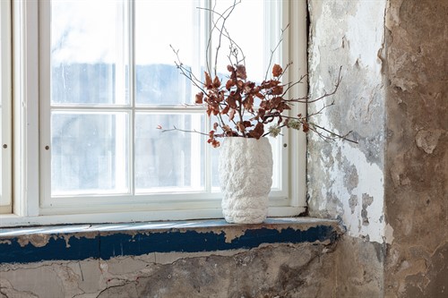 Underbar vas i en papiér mache look men gjord i en vattentät stengods.