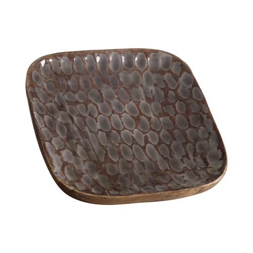 Vacker handgjord bricka eller fat i emaljerat mangoträ. En fin gråbrun färg.