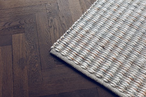 Multifärgad dörrmatta i en ullmix. Mjuka naturfärger.
