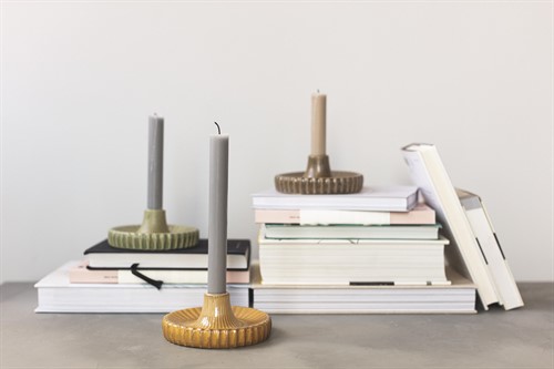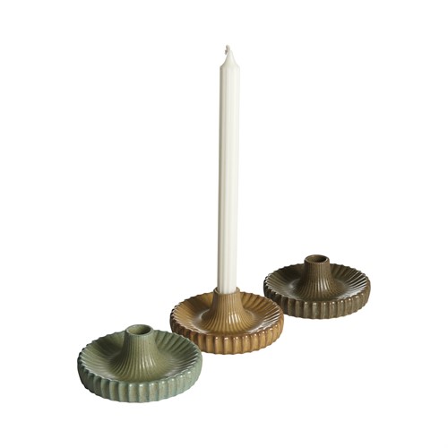 Retroinspirerade ljusstake i stengods. Finns i gul, brun och grön.
