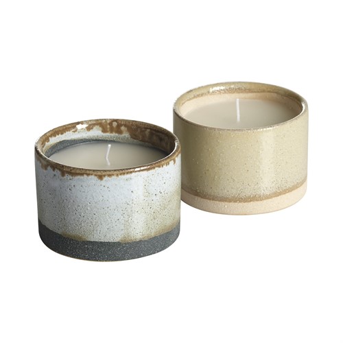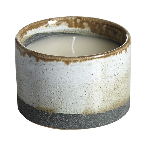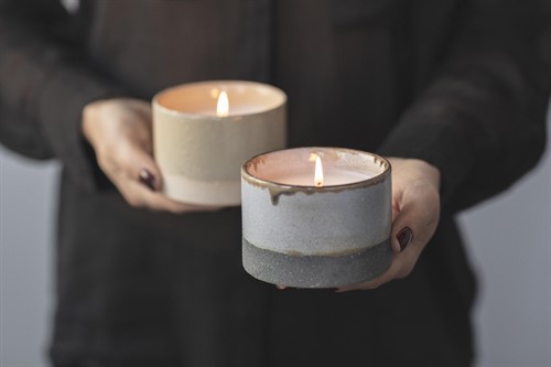 Paraffinljus i stengods. Finns i matchande sandfärgad variant. Brinntid 12 timmar.