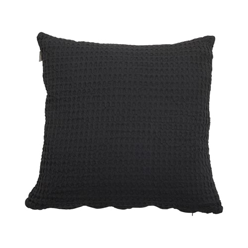 Stort grått kuddfodral tillverkat i bomull med ett invävt våffelmönster. Finns matchande överkast.