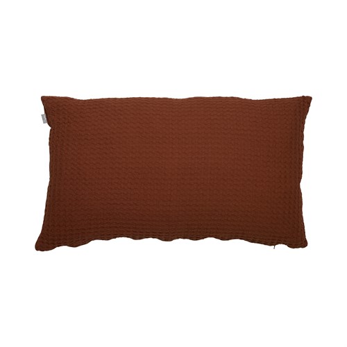 Rostrött kuddfodral tillverkat i bomull med ett invävt våffelmönster. Då kvaliten är ganska stretchig så passar innerkudde stl 70x100 cm fint till denna storlek.