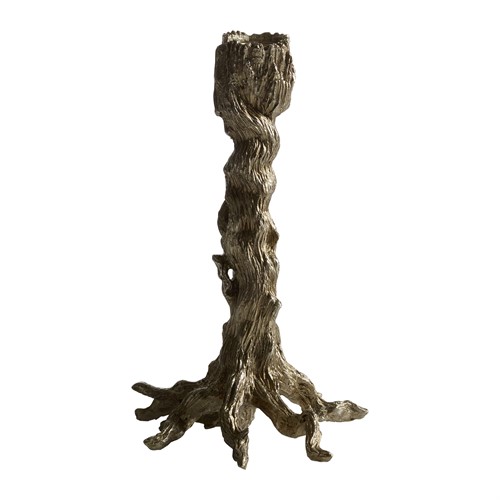 Häftig ljusstake formad som en stam med rötter som fötter. Med en snygg antik silverlook.