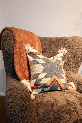Kuddfodral med snyggt mönster och kraftisg struktur på framsidan. Baksidan är enfärgat beige.