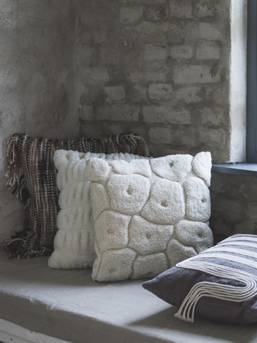 Mysigt lurvigt kuddfodral i bomull med enfärgad matchande baksida.