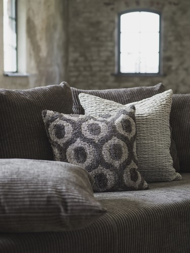 Vackert enfärgat kuddfodral i en krinklad bomullssammet med snygga broderingar i rayontråd.